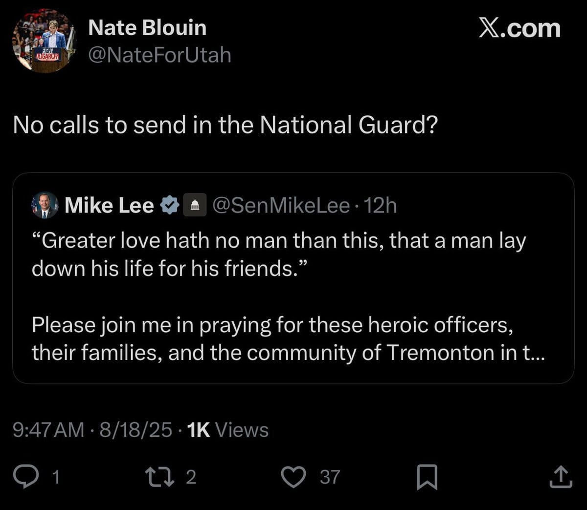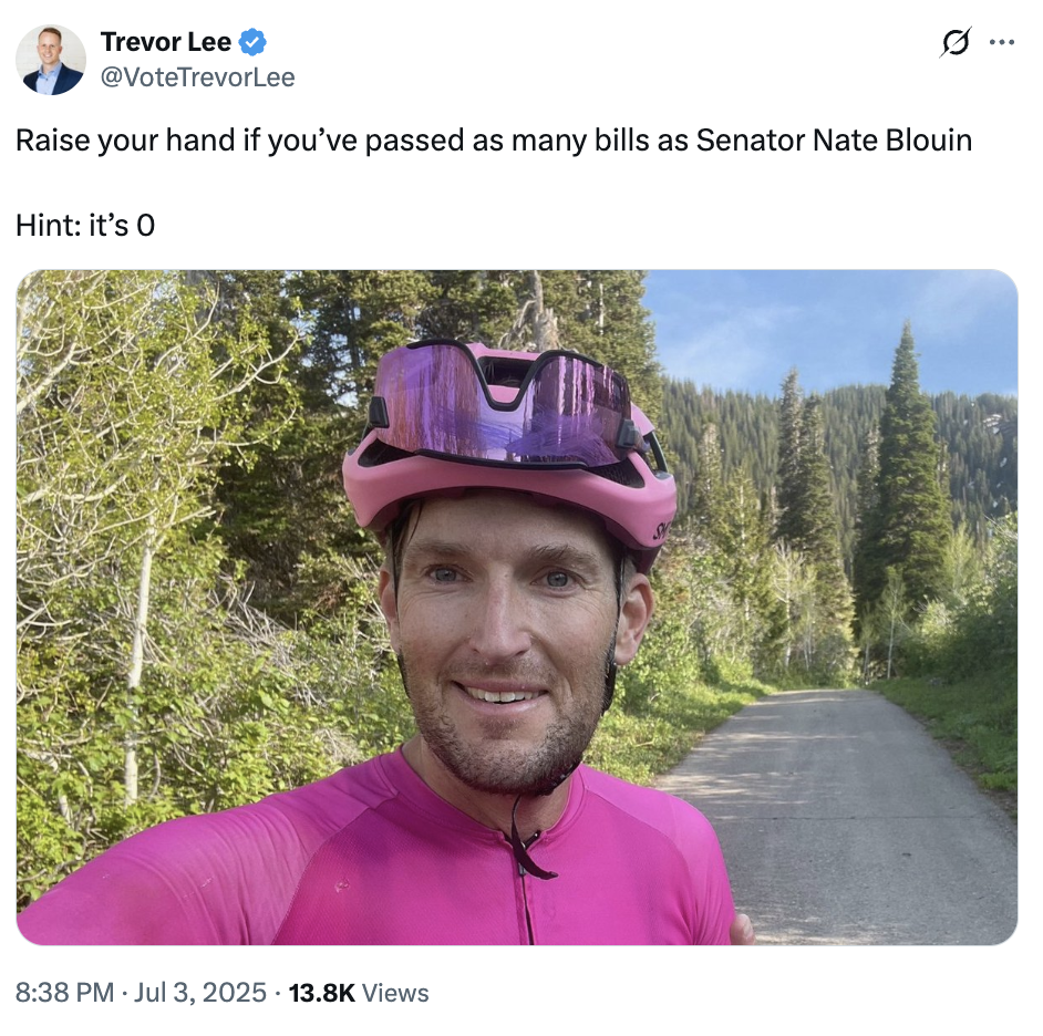 Blouin's aggressive social media style has certainly drawn attention. When two Tremonton police officers were recently killed, Blouin joked that maybe it was time to send in the National Guard into the small Utah community. This lack of empathy drew widespread criticism from Republican lawmakers helping explain Blouin's lack of legislative success.